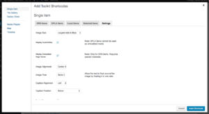 You may also adjust size, alignment, captions, and other display options in the Settings tab.